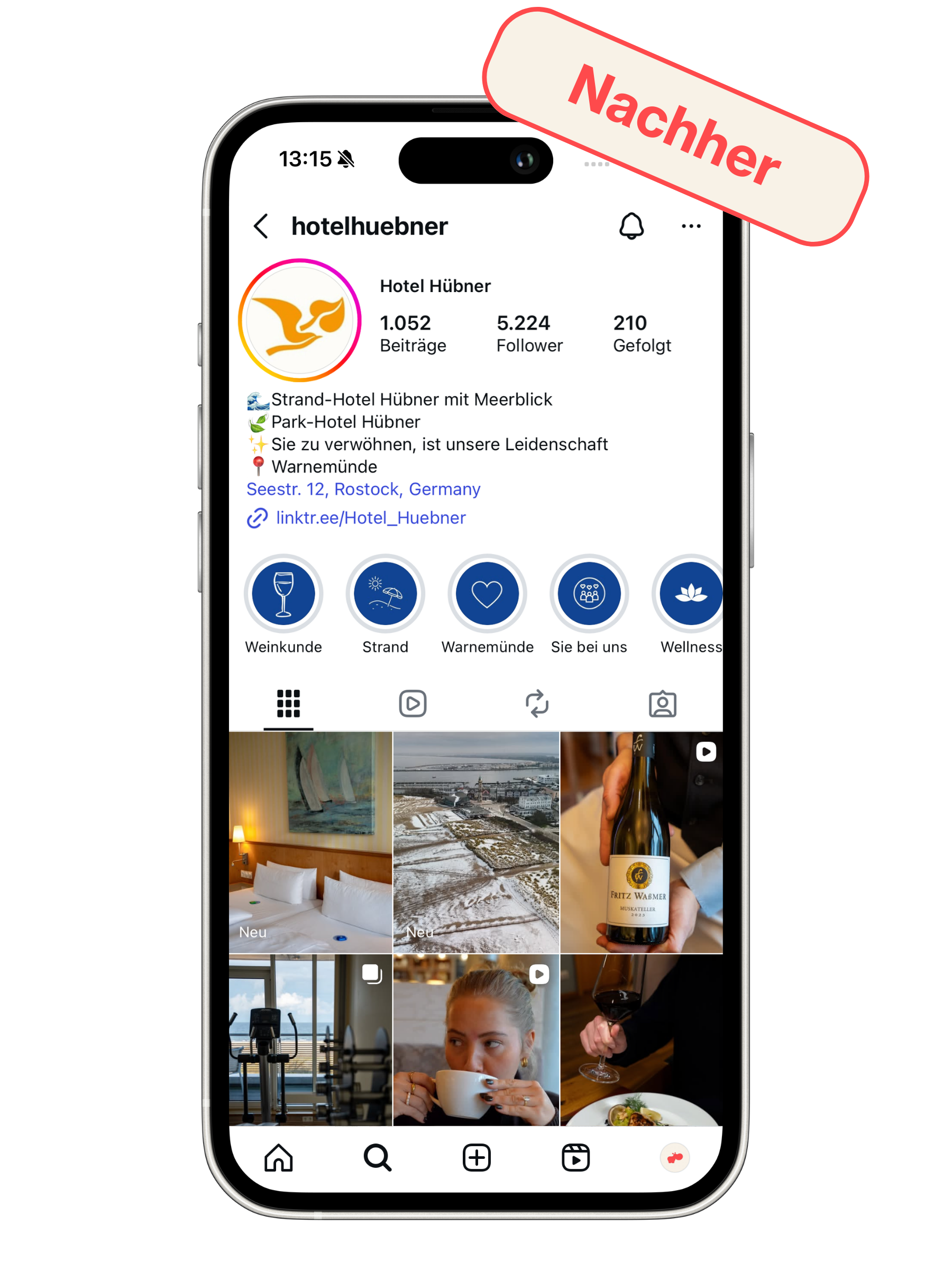 Für Hotel Hübner galt es, eine Social Media Präsenz zu etablieren, die dem hochwertigen Anspruch der Marke gerecht wird und gleichzeitig neue Zielgruppen anspricht.